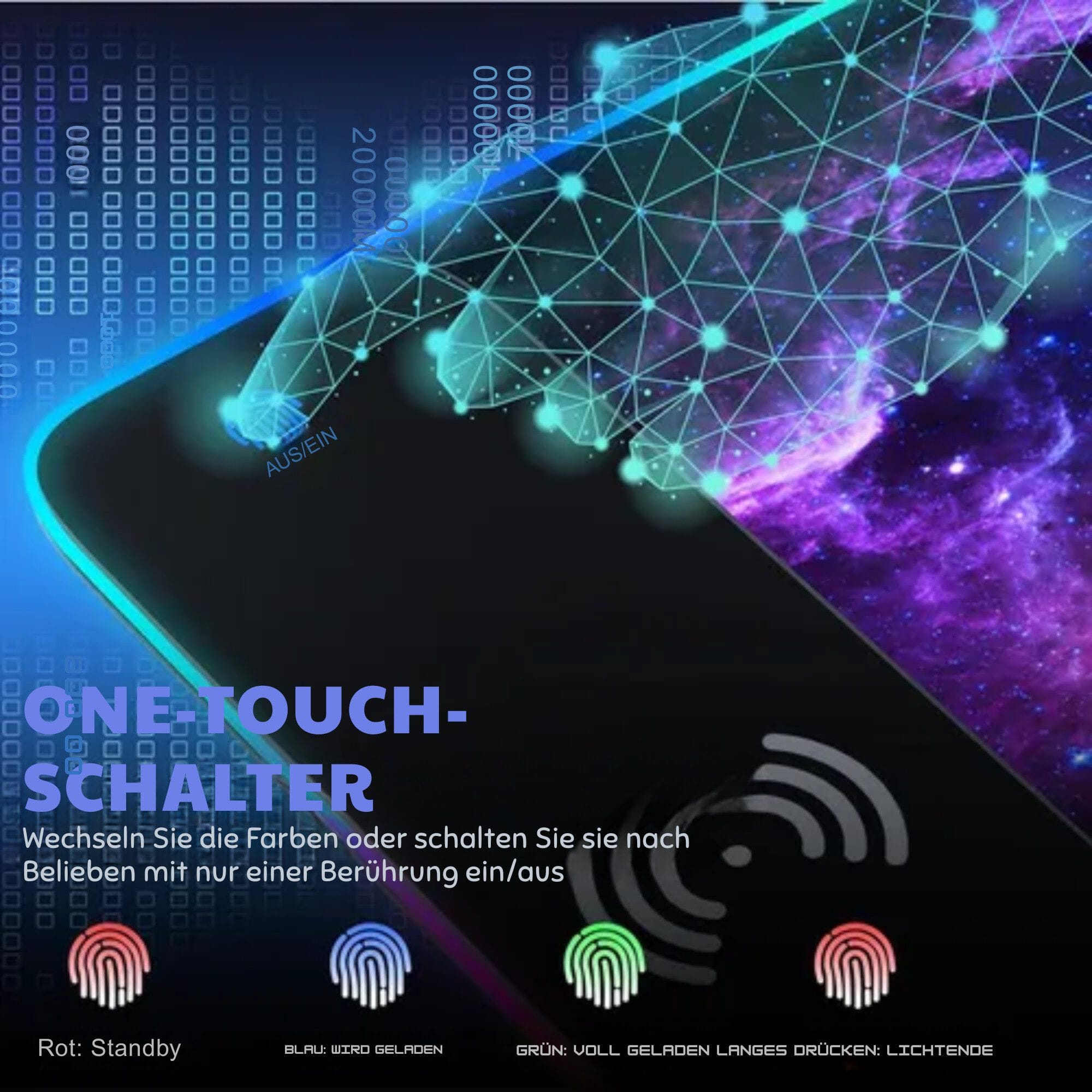 Dieses Mauspad bietet 10 verschiedene RGB-Lichtmodi, die über eine einfache Tastensteuerung eingestellt werden können. Es gibt 3 dynamische und 7 statische Lichtmodi. Wählen Sie Ihren bevorzugten Farbmodus und schaffen Sie so ein visuell beeindruckendes Gaming-Erlebnis. Dank der Speicherfunktion merkt sich das Mauspad den zuletzt ausgewählten Lichtmodus. Es verleiht Ihrem Gaming- oder Arbeitsbereich einen eleganten Touch.